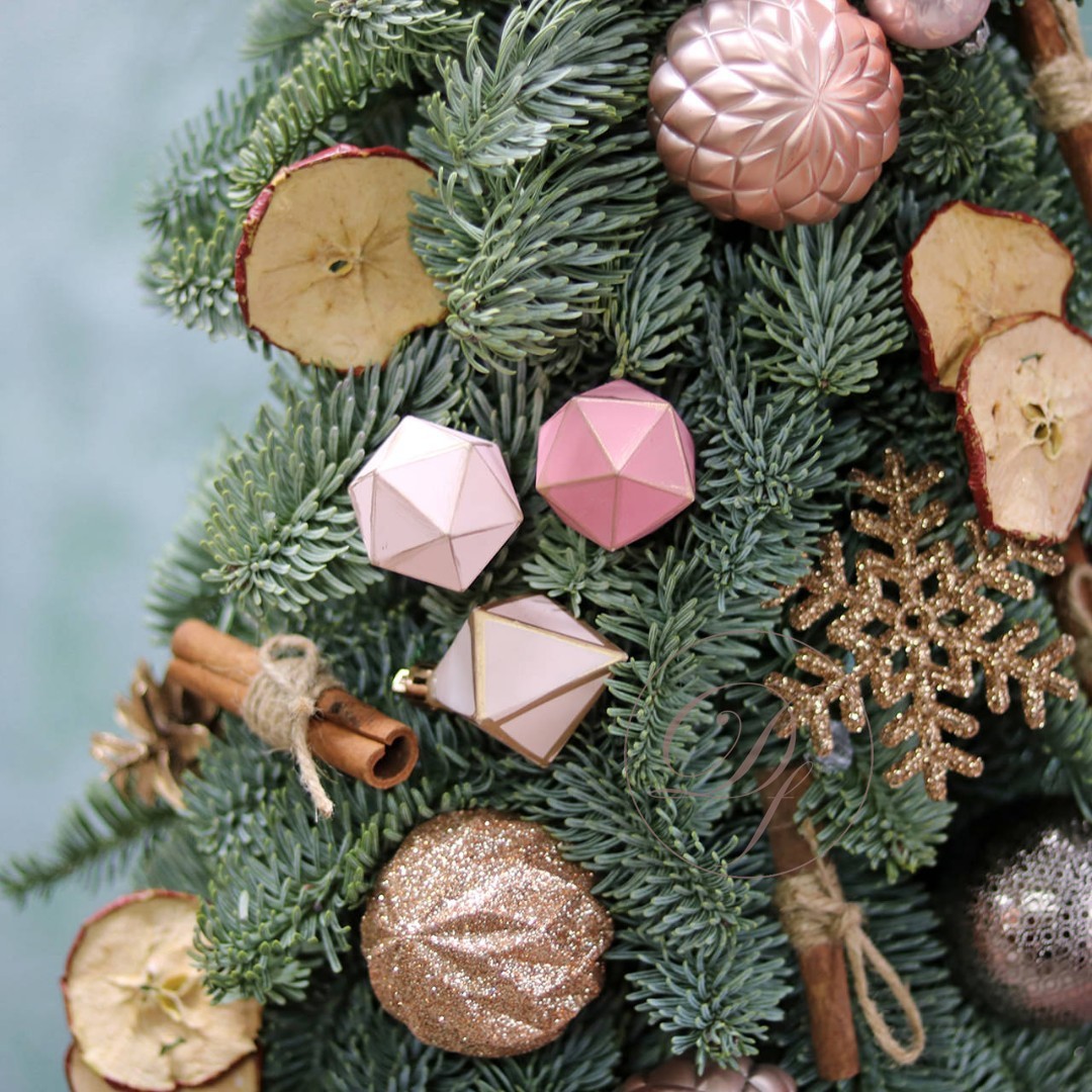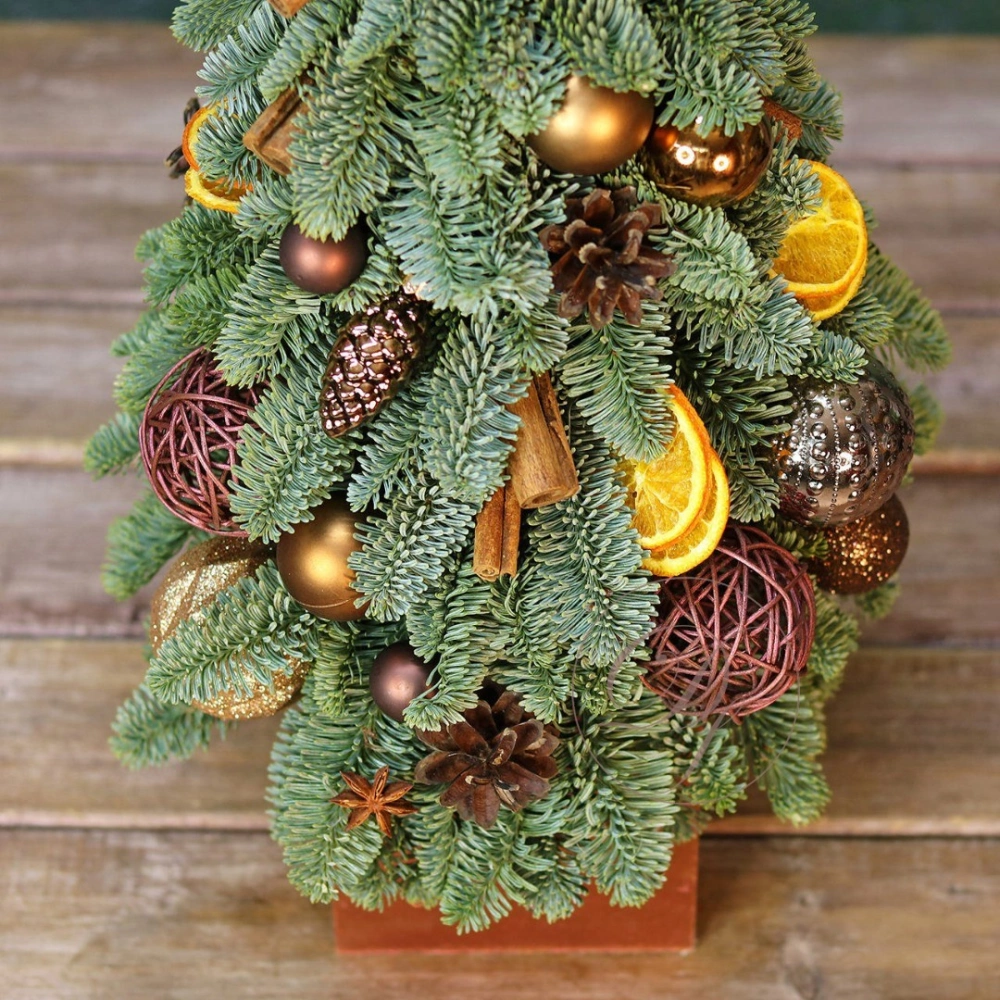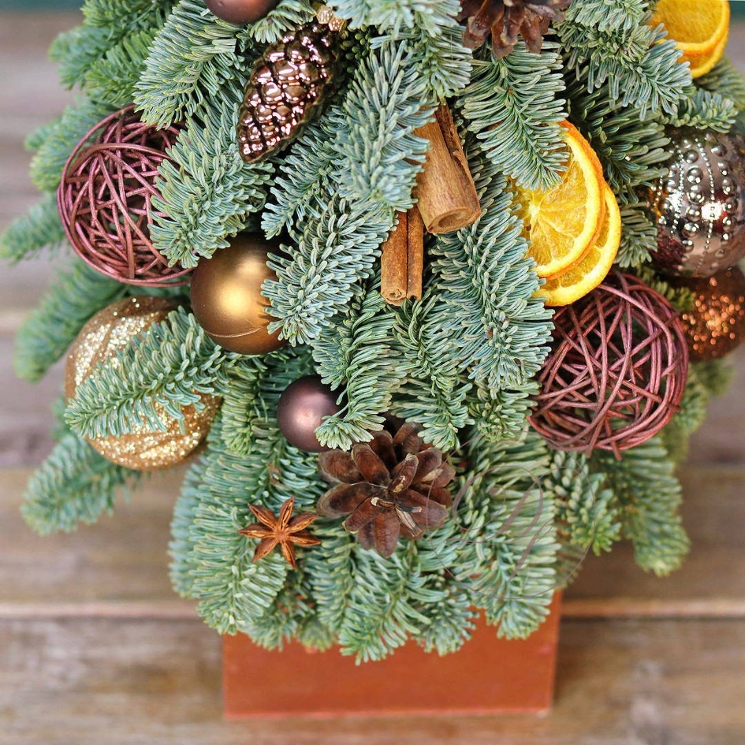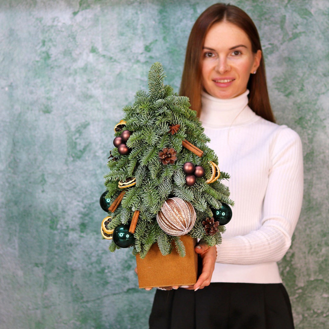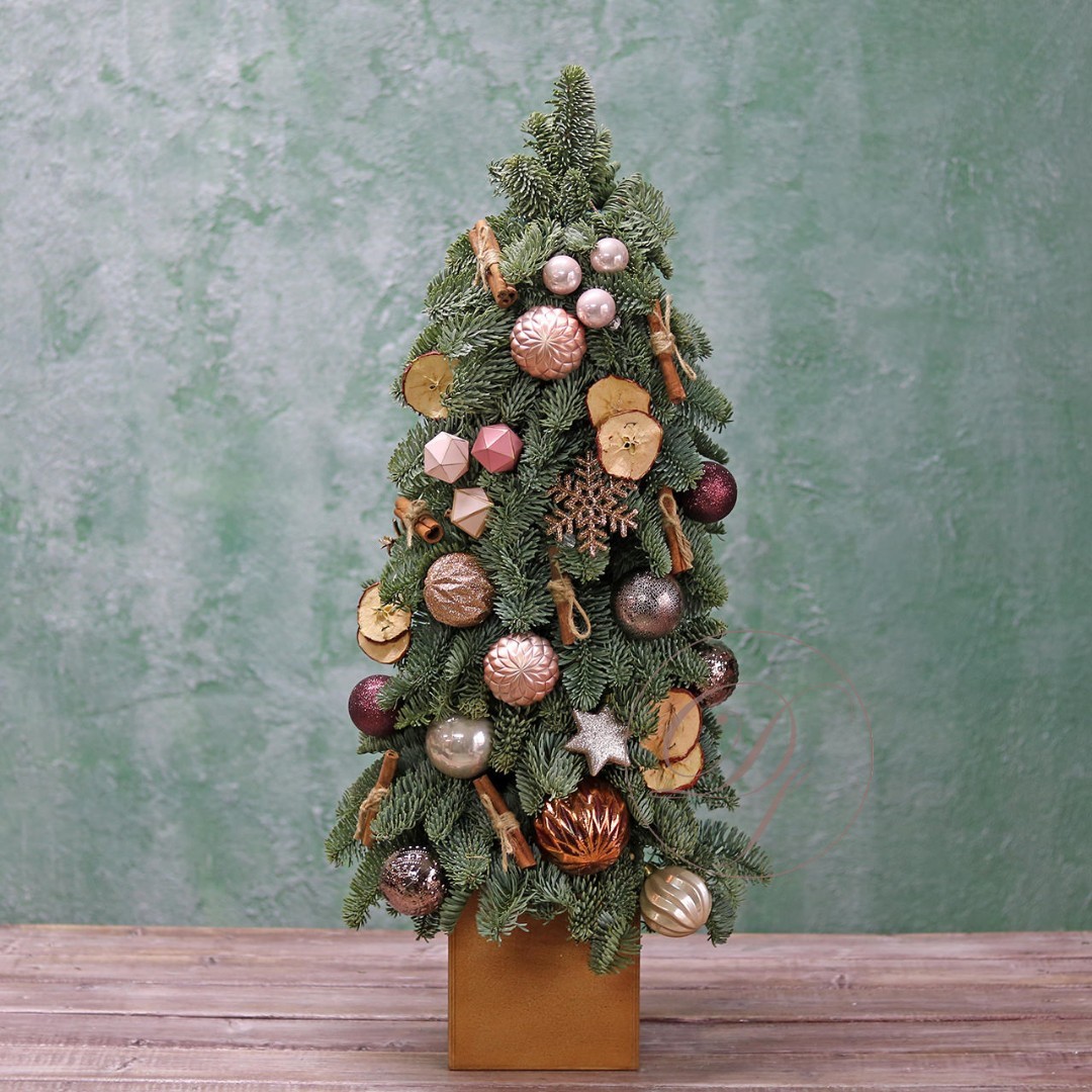 Новогодняя ёлочка из натуральной хвои с авторским декором на заказ. На фотографии елочка высотой 40-45 см.