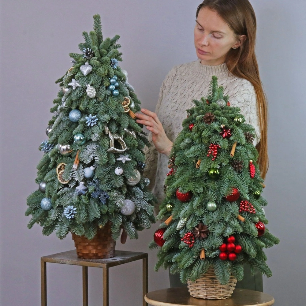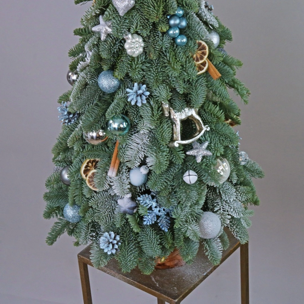 Новогодняя ёлочка из натуральной хвои с авторским декором на заказ. На фотографии елочка высотой 50-55 см.