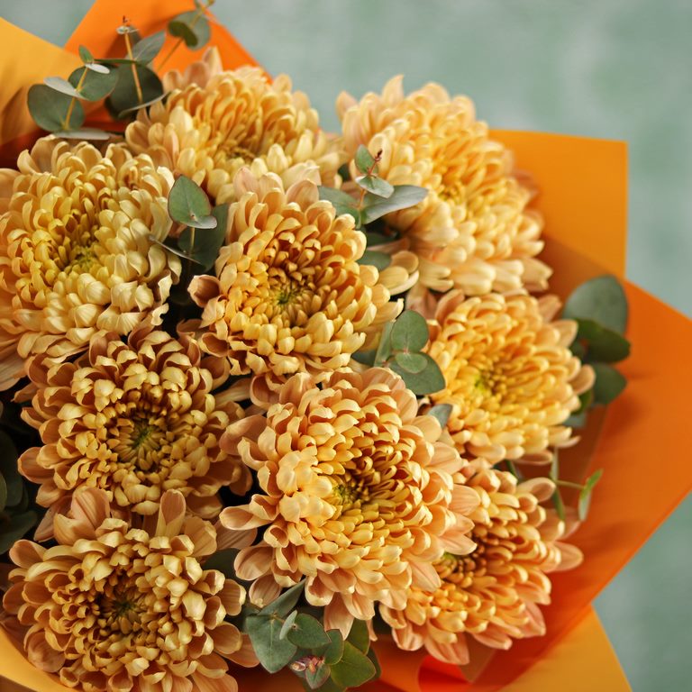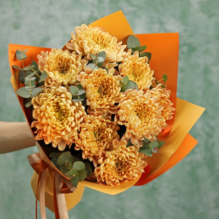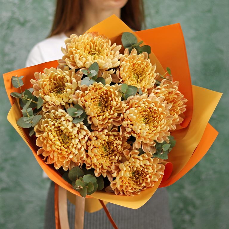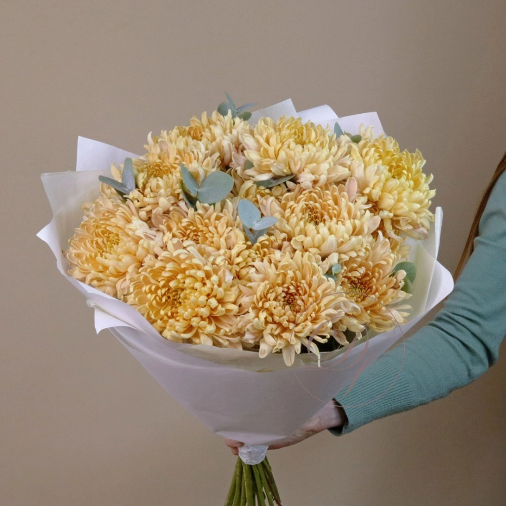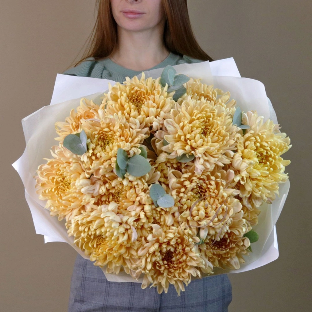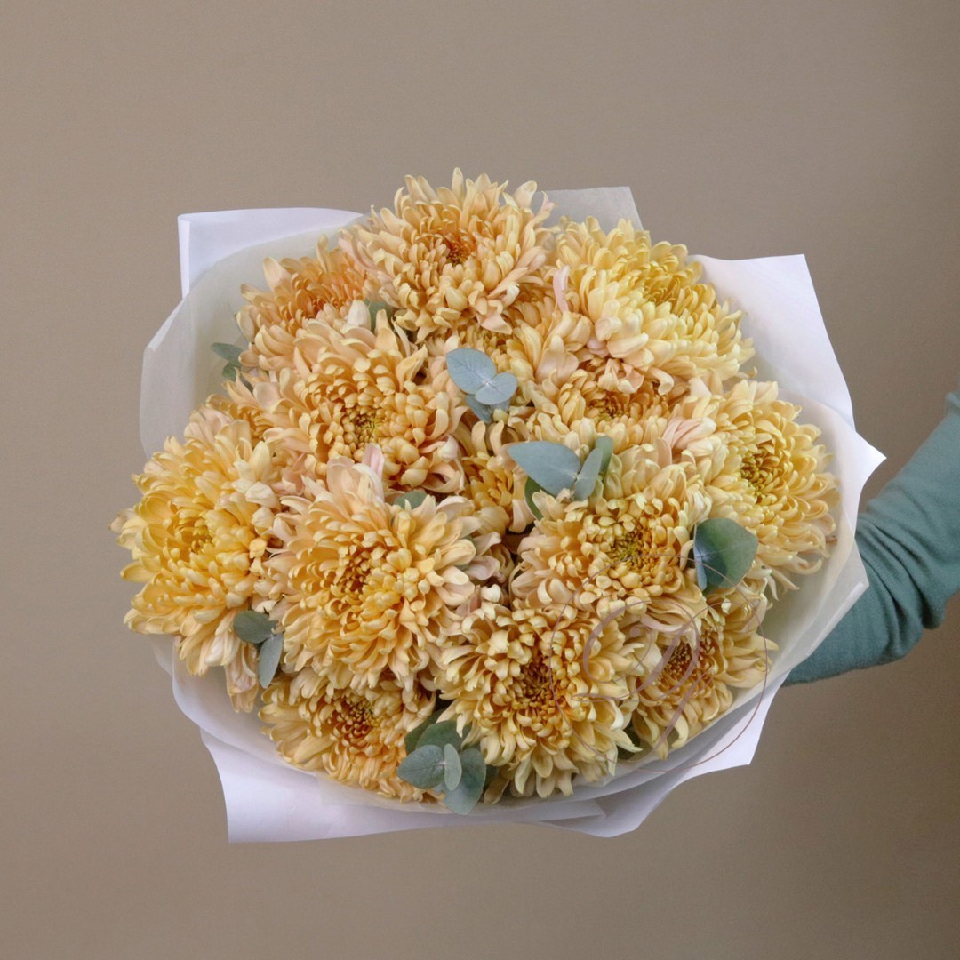 Букет из одноголовой хризантемы карамельного цвета. Вы можете выбрать любое количество цветов указанное в перечне к данному букету.