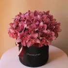 Цветы в коробках это композиции, составленные с использованием специальной губки Oasis (пиафлор) которая пропитана водой. Для того чтобы цветы дольше оставались свежими, добавляйте в нее немного воды каждый день.