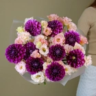 Букет из Георгин и эустомы. Вы можете выбрать любое количество цветов указанное в перечне к данному букету.