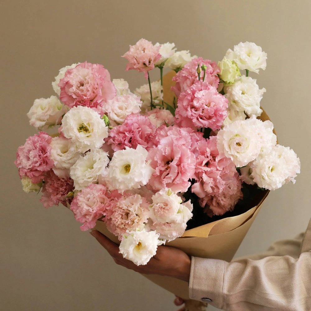 Букет из розовой Эустомы (Лизиантус). На фотографии 9 веточек розовый эустомы. Вы можете выбрать любое количество цветов указанное в перечне к данному букету.