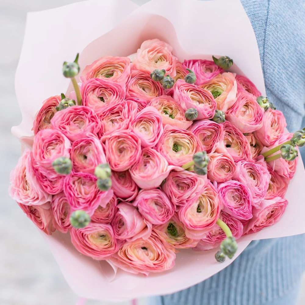 Букет из розовых Ранункулюсов. Вы можете выбрать любое количество цветов указанное в перечне к данному букету.