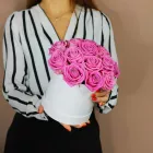 Цветы в коробках это композиции, составленные с использованием специальной губки Oasis (пиафлор) которая пропитана водой. Для того чтобы цветы дольше оставались свежими, добавляйте в нее немного воды каждый день.