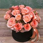 Цветы в коробках это композиции, составленные с использованием специальной губки Oasis (пиафлор) которая пропитана водой. Для того чтобы цветы дольше оставались свежими, добавляйте в нее немного воды каждый день.