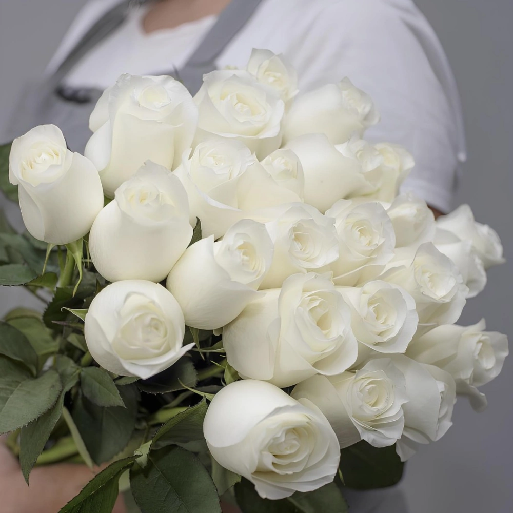 Букет из роз сорта Прауд - это роза на любой случай. Каждый цветок этого сорта обладает чистым белым оттенком. Букет из роз Прауд - сосредоточие чистоты и шика, такой букет выглядит очень дорого и изыскано благодаря уникальному глубокому белому цвету - особенности этого сорта. Розы Прауд - символ чистоты, роскоши, богаства и благородства. Он станет идеальным подарком для тех, кто ценит красоту и изысканность, которые способны подарить незабываемые эмоции и восхитительные впечатления. Удивите своих близких и друзей уникальным букетом из роз Прауд! Он станет настоящей жемчужиной в коллекции ваших цветочных композиций.