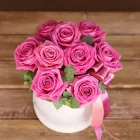 Цветы в коробках это композиции, составленные с использованием специальной губки Oasis (пиафлор) которая пропитана водой. Для того чтобы цветы дольше оставались свежими, добавляйте в нее немного воды каждый день.