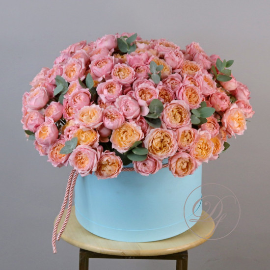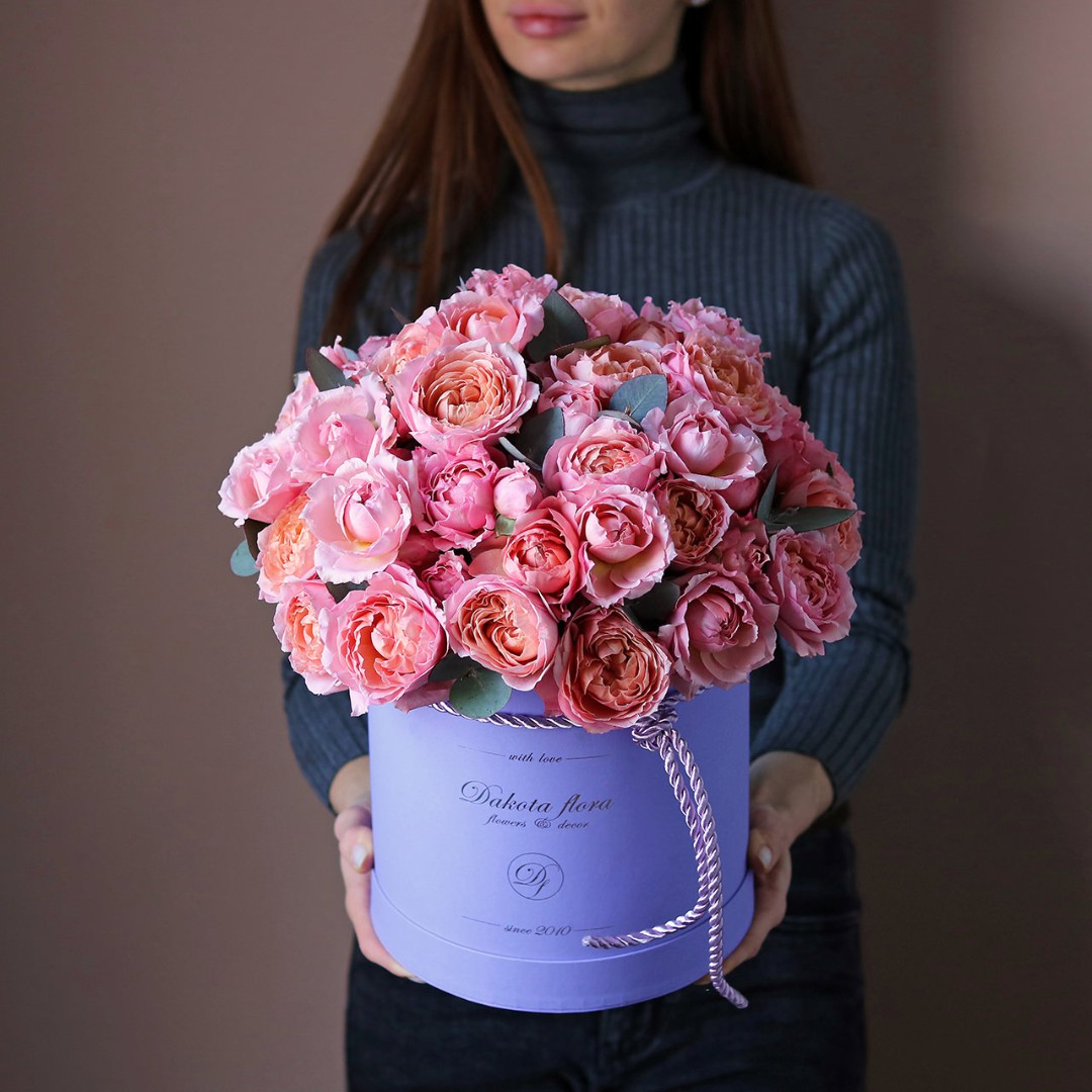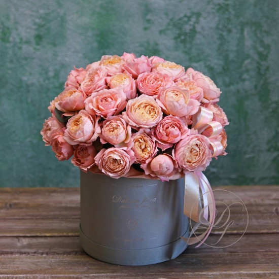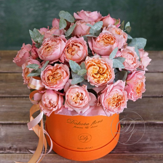 Цветы в коробках это композиции, составленные с использованием специальной губки Oasis (пиафлор) которая пропитана водой. Для того чтобы цветы дольше оставались свежими, добавляйте в нее немного воды каждый день.