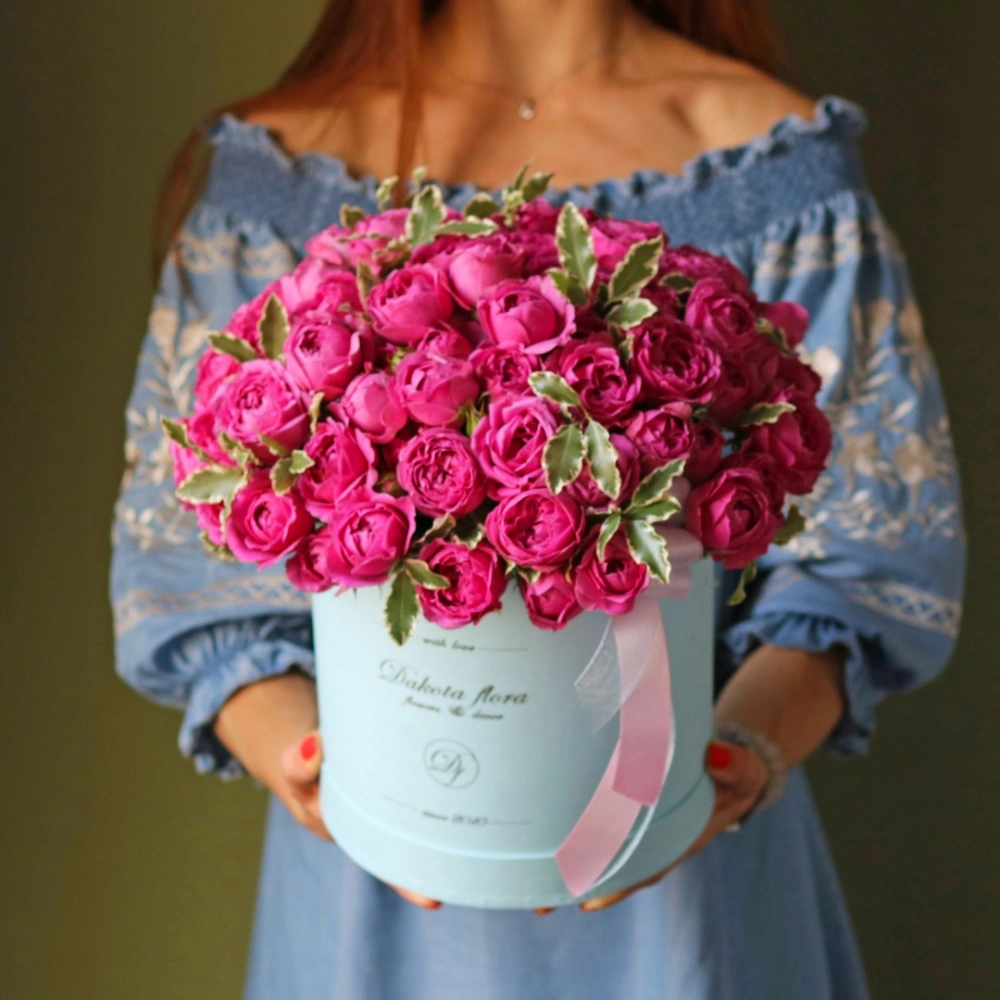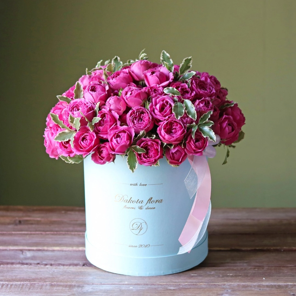 Цветы в коробках это композиции, составленные с использованием специальной губки Oasis (пиафлор) которая пропитана водой. Для того чтобы цветы дольше оставались свежими, добавляйте в нее немного воды каждый день.