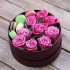 Авторские цветочные композиции в элегантных коробках различных форм, цветов, размеров, с добавлением сладостей в виде: баночки меда peroni, французских пирожных macarons, имбирных пряников и свежих ягод.