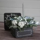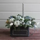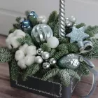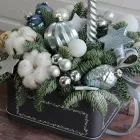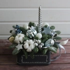 Оформить заказ на композицию из ели, лучше заранее, минимум за сутки, для изготовления и подбора декора требуется время. Композиция выполнена из натуральной ели (лапник), собрана на специальной губке, которая пропитана водой, это позволяет сохранить свежий внешний вид на максимально долгий срок. Для украшения мы используем новогодний декор, натуральные материалы, свечи, гирлянды.