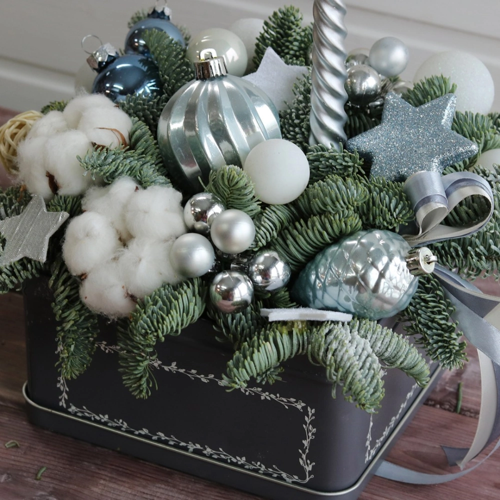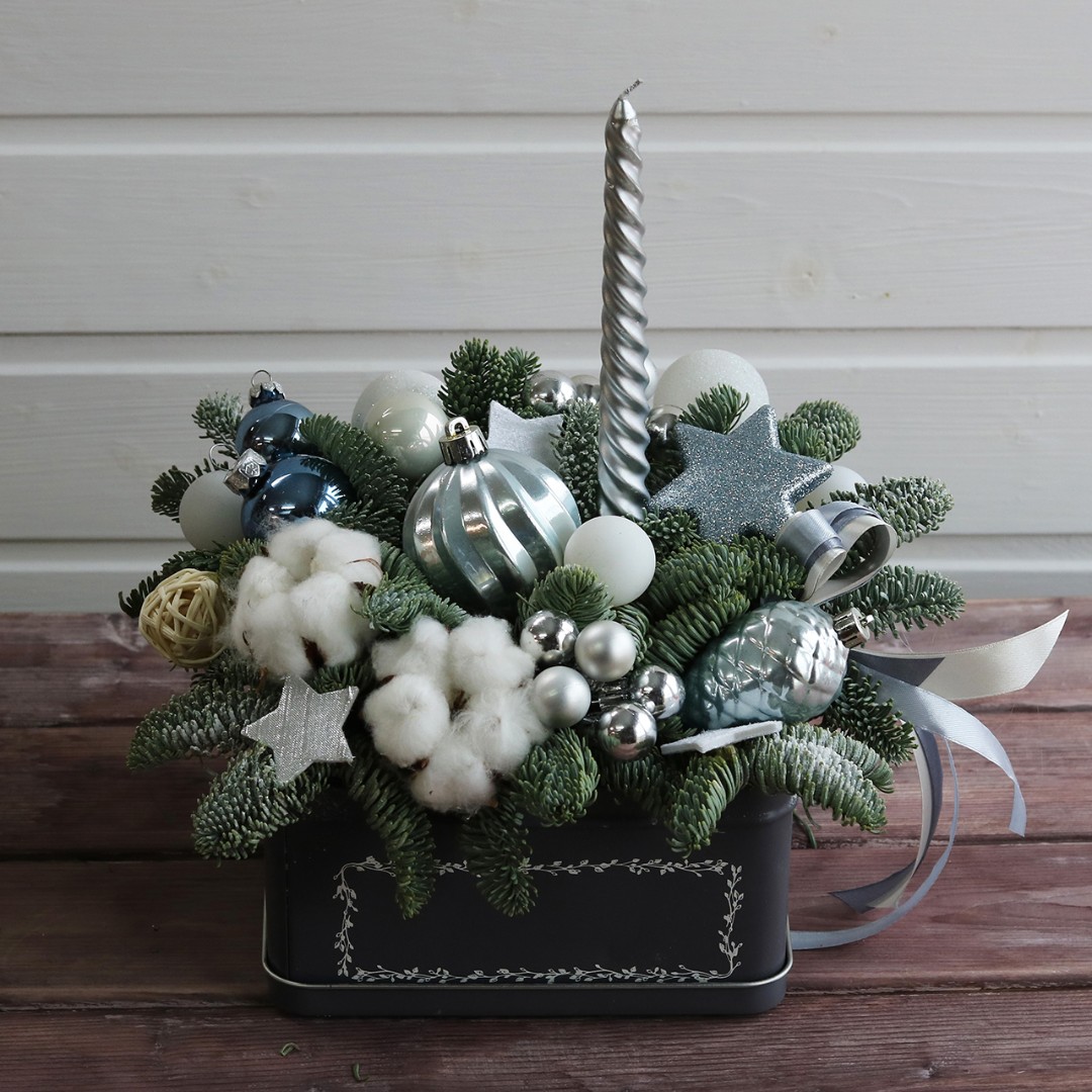 Новогодняя композиция из натуральной хвои с авторским декором на заказ.