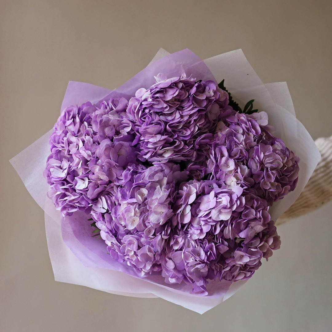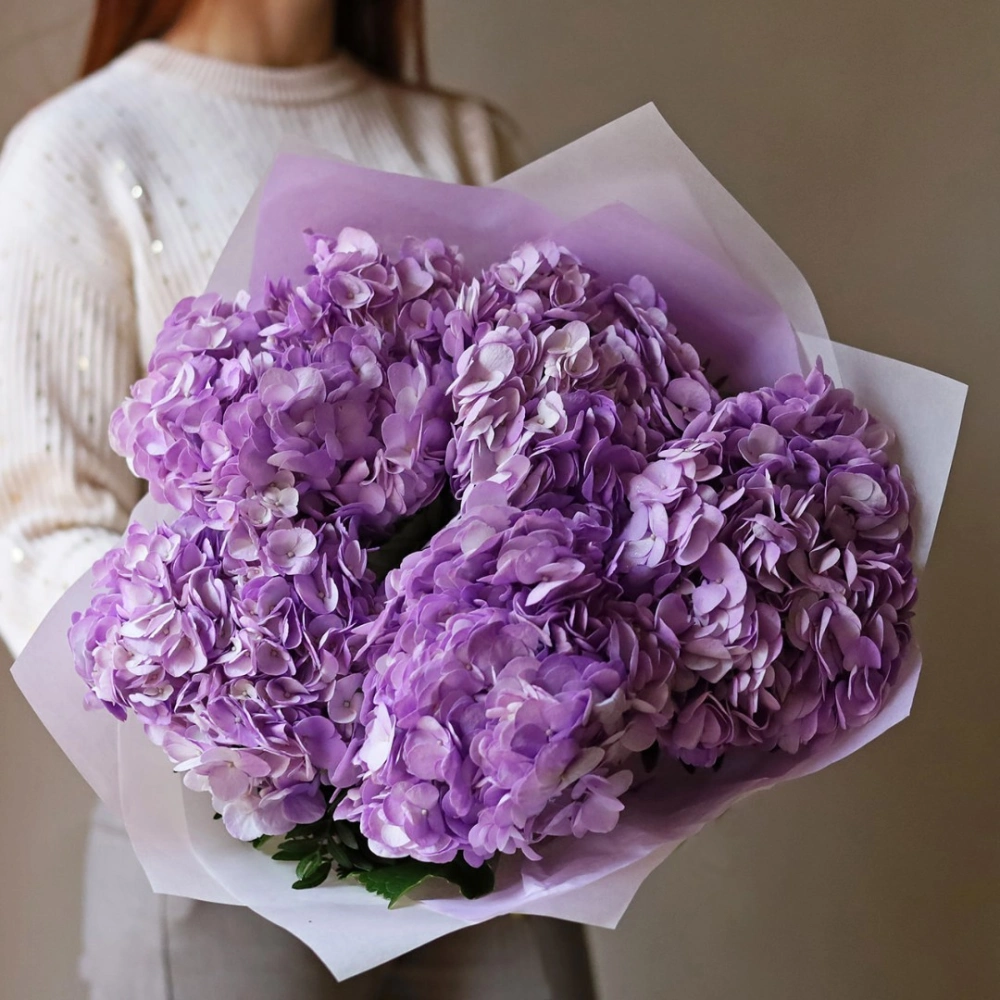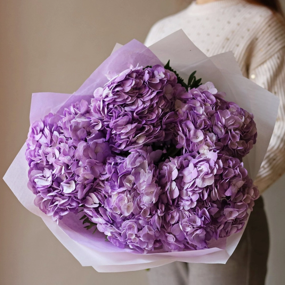 Букет из 11 шапочек фиолетовой гортензии. Вы можете выбрать любое количество цветов указанное в перечне к данному букету.
