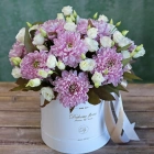 Хризантема и эустома в коробке