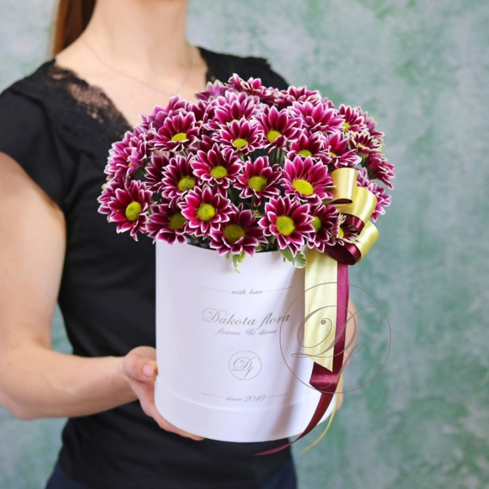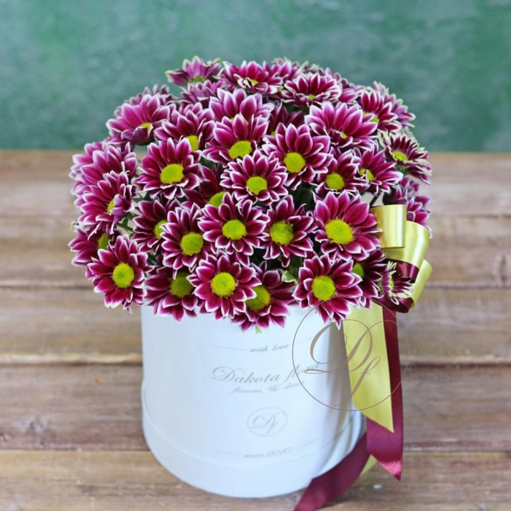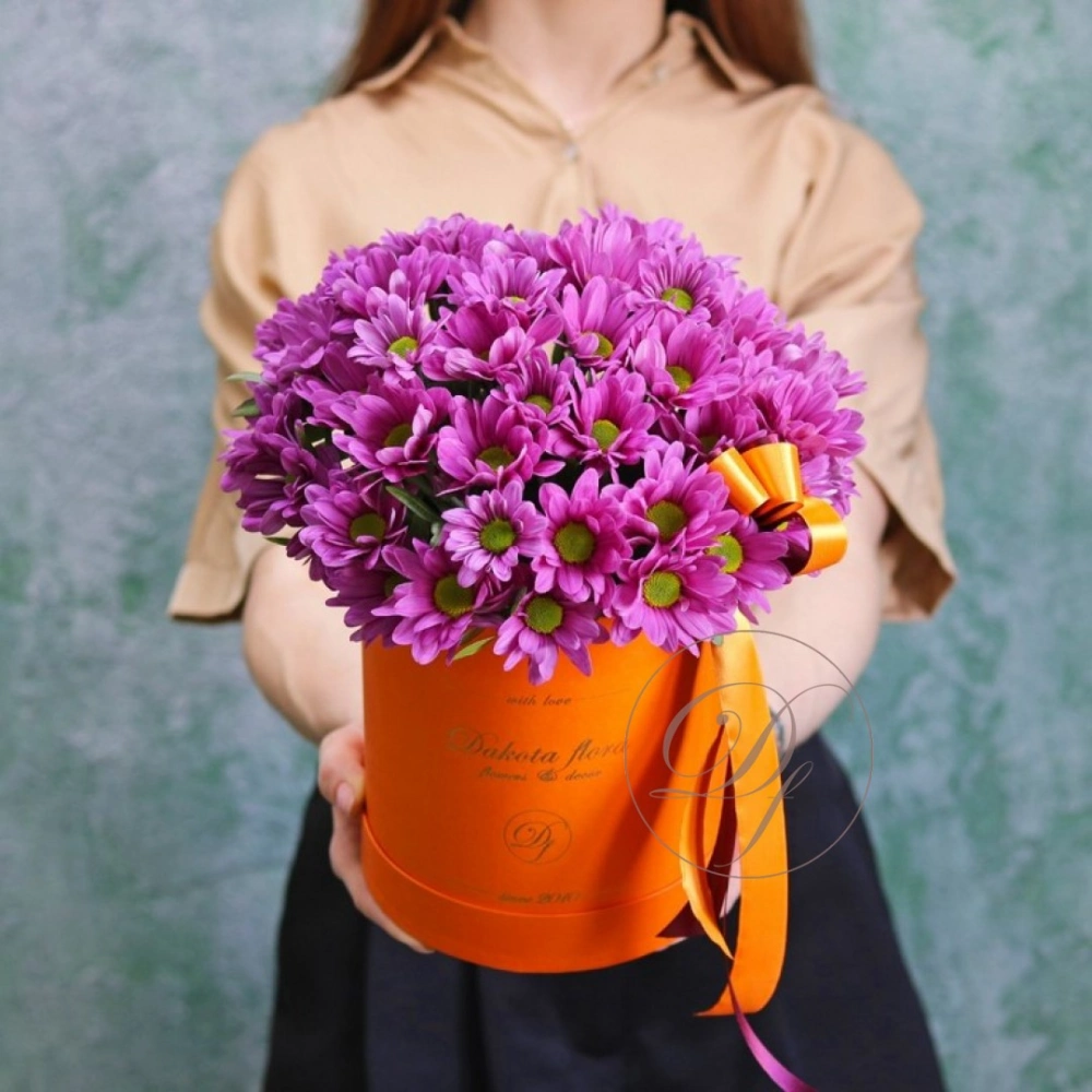 Хризантемы в коробке в ассортименте