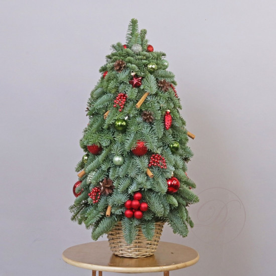 Оформить заказ на новогоднюю ёль лучше заранее, минимум за сутки, для изготовления ёлочки и подбора декора требуется время. Композиция выполнена из натуральной ели (лапник), собрана на специальной губке, которая пропитана водой, это позволяет сохранить свежий внешний вид на максимально долгий срок.