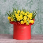 Цветы в коробках это композиции, составленные с использованием специальной губки Oasis (пиафлор) которая пропитана водой. Для того чтобы цветы дольше оставались свежими, добавляйте в нее немного воды каждый день.